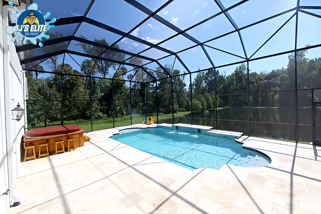 Enjoy a clearer view and a cleaner space. We remove dirt, algae, and insect residue from your pool screen enclosure using gentle but effective cleaning methods.